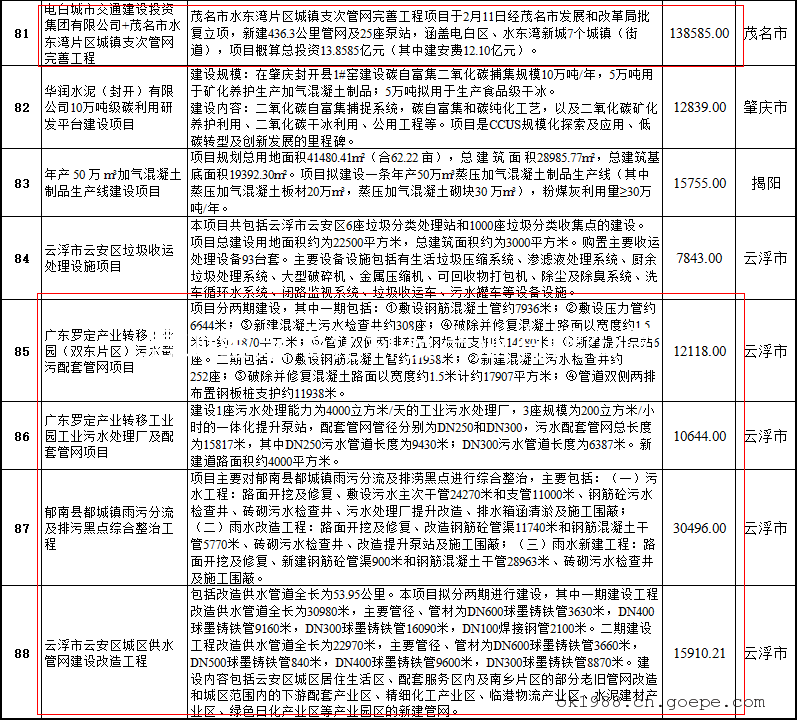 近日,广东省发展和改革委员会发布《关于广东省污染治理和节能减碳专项2023年中央预算内投资计划备选项目的公示》,共有88个项目入选,总投资超过362亿元。